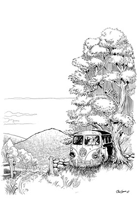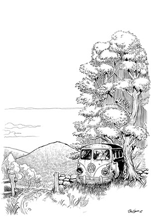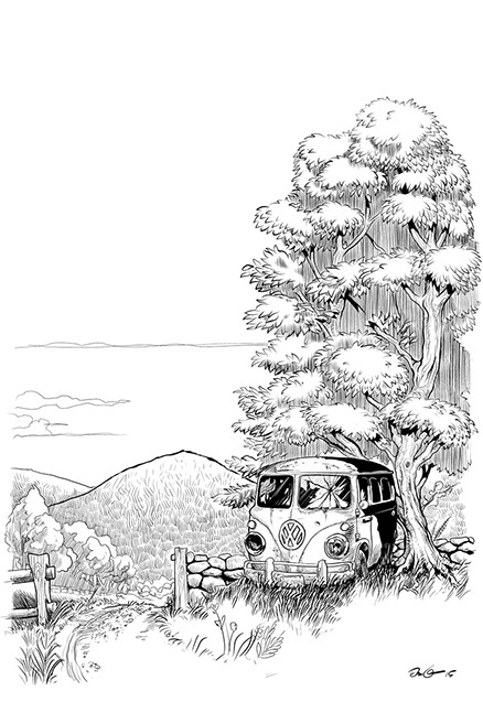 Adobe Illustrator study using Vector Brushes to ink and color. 2016